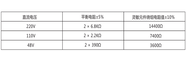 繼電器動作值:當母線任何一側對地絕緣電阻下降到下表規定值時,繼電器應可靠動作。