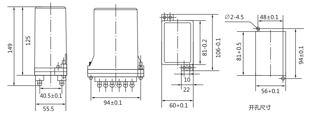DZ-31B中間繼電器外形及開孔尺寸